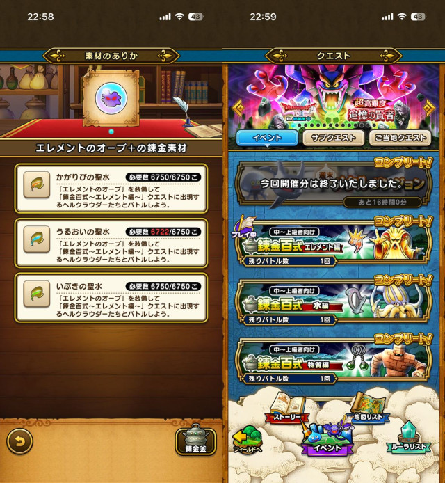 今週の錬金消化、