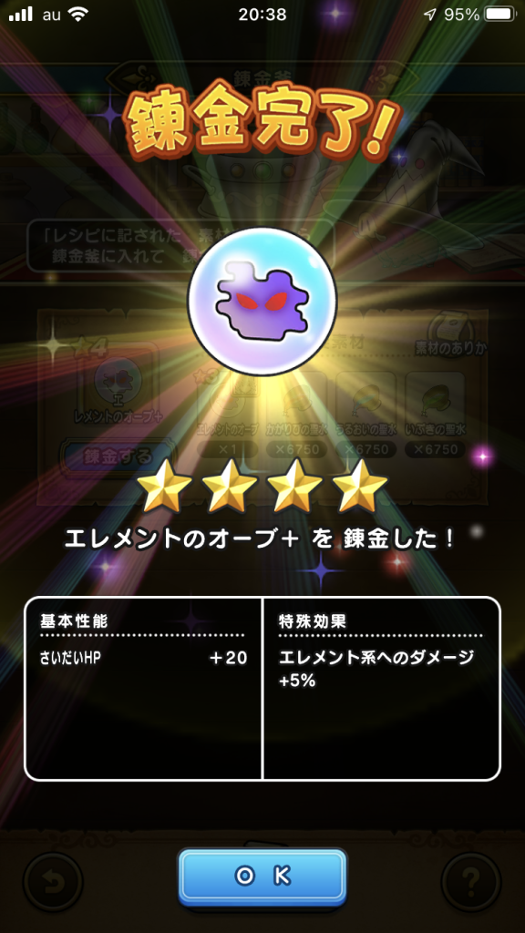 オレもちょうど100回目で錬金完了。