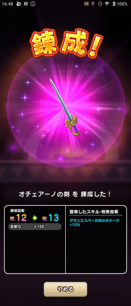 つい最近、らいめいの剣を入手出来たので完全に出番無し。ゼシカのぱふぱふ武器の方が良かったかな?