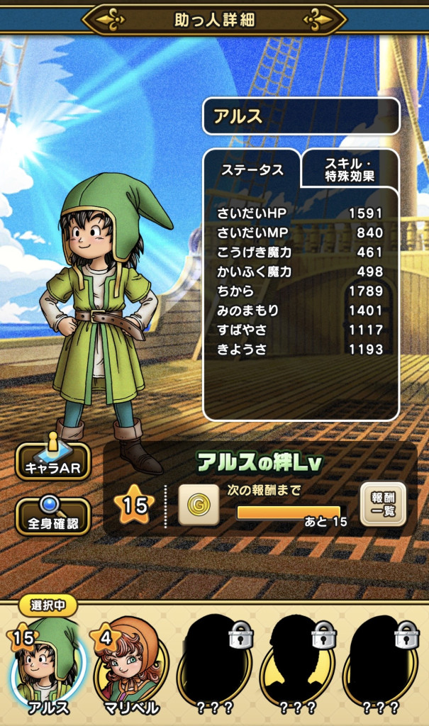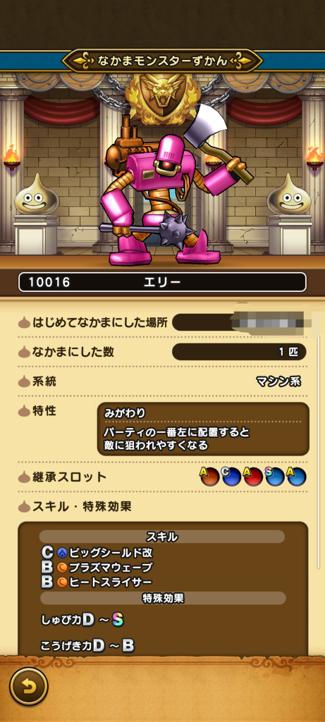 17章周回や岐阜あたたた(心珠ポイント目的)では悪魔系ライオネック・バアルゼブブ用に短剣を、雲千里では植物系エビプラ用に槍を入れるのが最適編成になった。目的にもよるけど周回の重要度は、「素早さ確保>1ターン討伐の火力確保(できるだけ短手番)>武器種(目的心のドロップ率アップ)>MP消費/回復量>メタル対策」になったと思う。