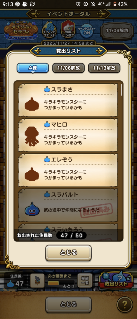 普段気にしてなかったけど、欲しい時にキラキラモンスターが全然出なくてスライムを救出できないぜ