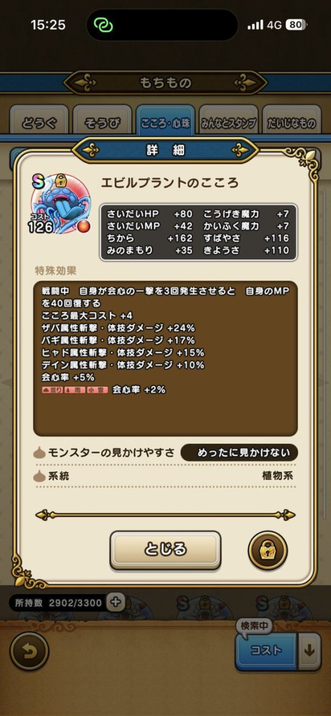 イベントクエストをセットして湧いたエビルプラントと戦ったけど、千里行と同じくらい強くて、HP高いしマヒャド痛いしで。