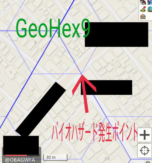 わたしの散歩ルートで必ずバイオハザードになるのはhex9の境目です、8の場所ではなってないですね