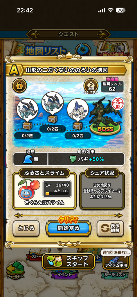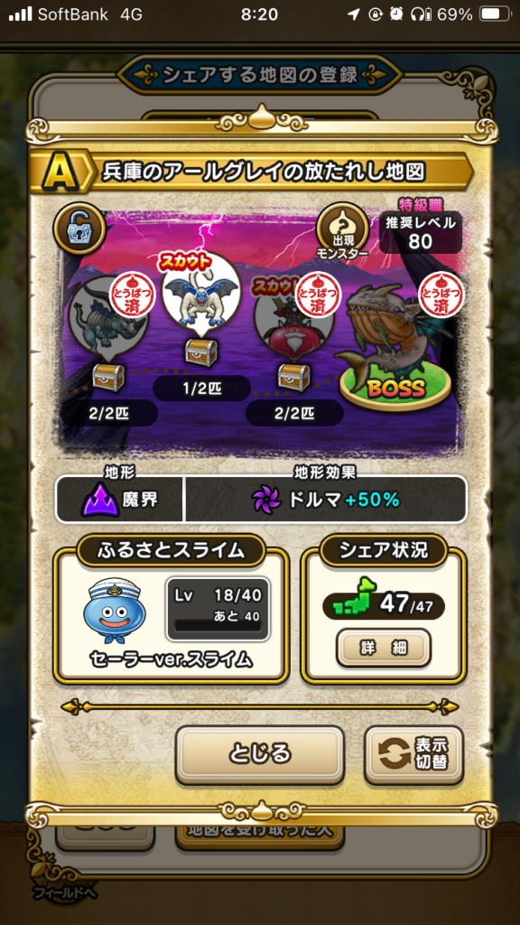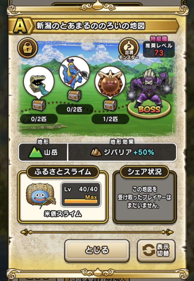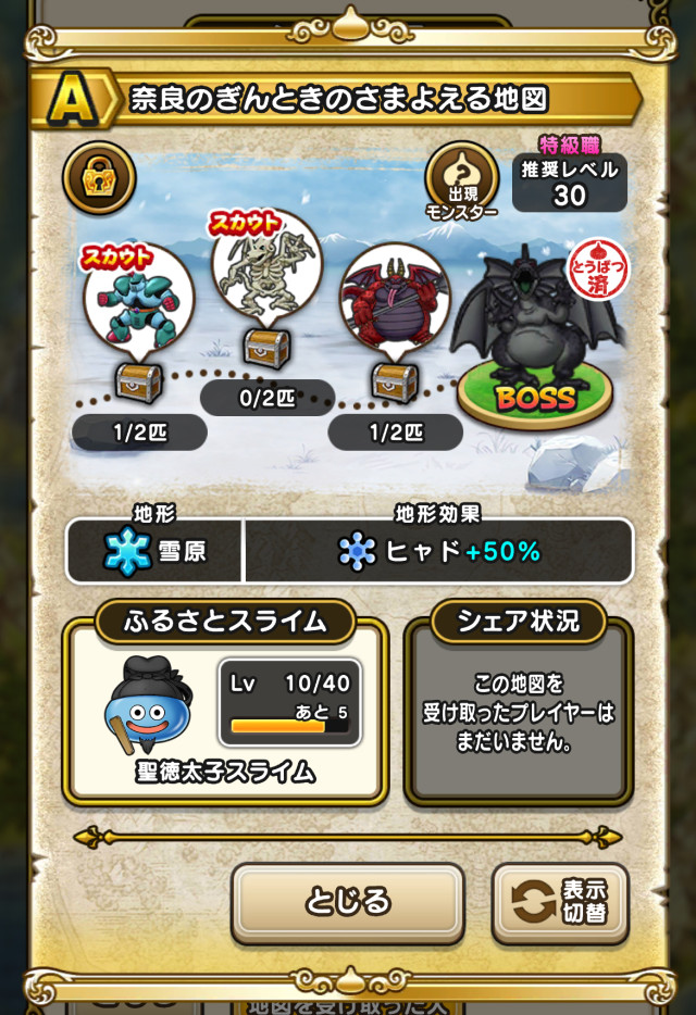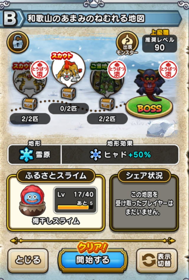 ドラクエウォークの宝の地図をシェア・入手するためのフレンド募集掲示板です。シェア時は宝の地図の内容(グレード、BOSS、お宝モンスター、都道府県)と自分のIDを記載してください。