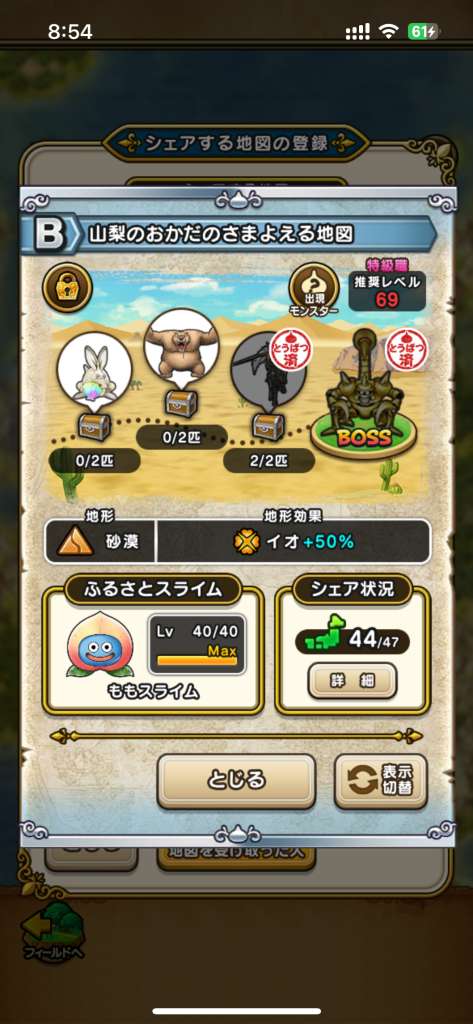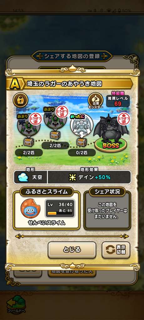 ドラクエウォークの宝の地図をシェア・入手するためのフレンド募集掲示板です。シェア時は宝の地図の内容(グレード、BOSS、お宝モンスター、都道府県)と自分のIDを記載してください。