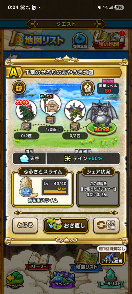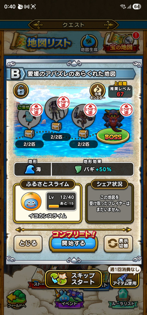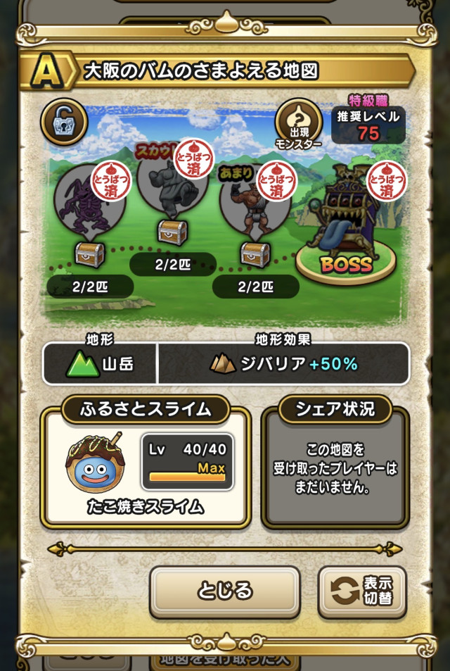 ドラクエウォークの宝の地図をシェア・入手するためのフレンド募集掲示板です。シェア時は宝の地図の内容(グレード、BOSS、お宝モンスター、都道府県)と自分のIDを記載してください。