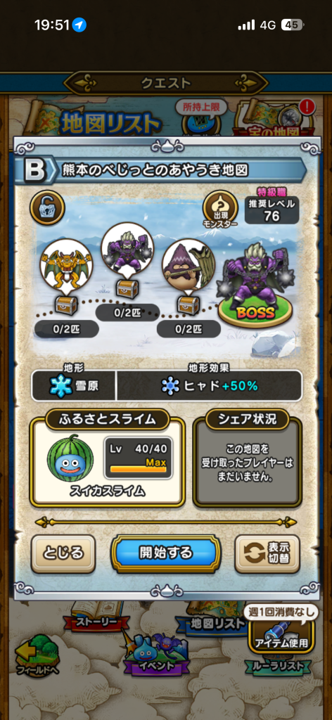 熊本のべじっとのあやうき地図 ヒャド Lv76