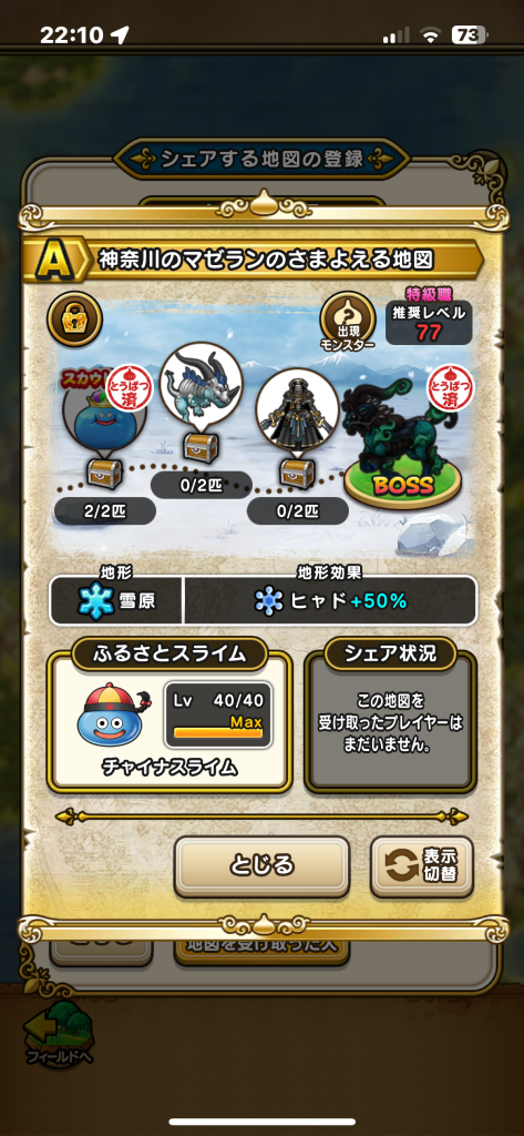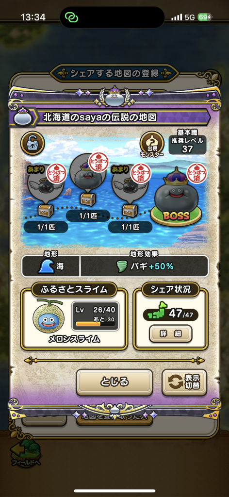 ふるさとスライムの地図があと秋田、愛媛5レベづつで終わります