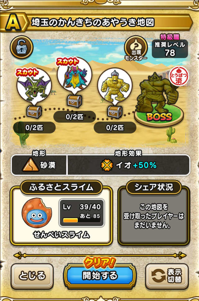 ドラクエウォークの宝の地図をシェア・入手するためのフレンド募集掲示板です。シェア時は宝の地図の内容(グレード、BOSS、お宝モンスター、都道府県)と自分のIDを記載してください。