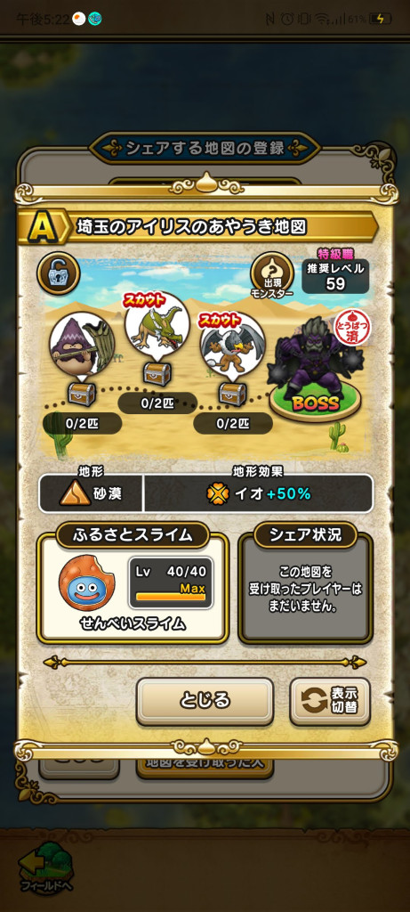 ドラクエウォークの宝の地図をシェア・入手するためのフレンド募集掲示板です。シェア時は宝の地図の内容(グレード、BOSS、お宝モンスター、都道府県)と自分のIDを記載してください。