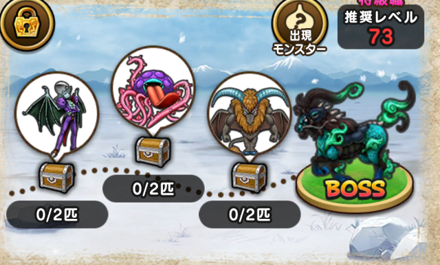 ![]() 闇の覇者 りゅうおうLv99 | ![]() 究極進化 エビプリLv99 | ![]() 魔王 バラモスLv99 | ![]() 暴嵐天 バリゲーンLv99 |