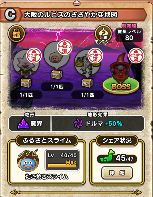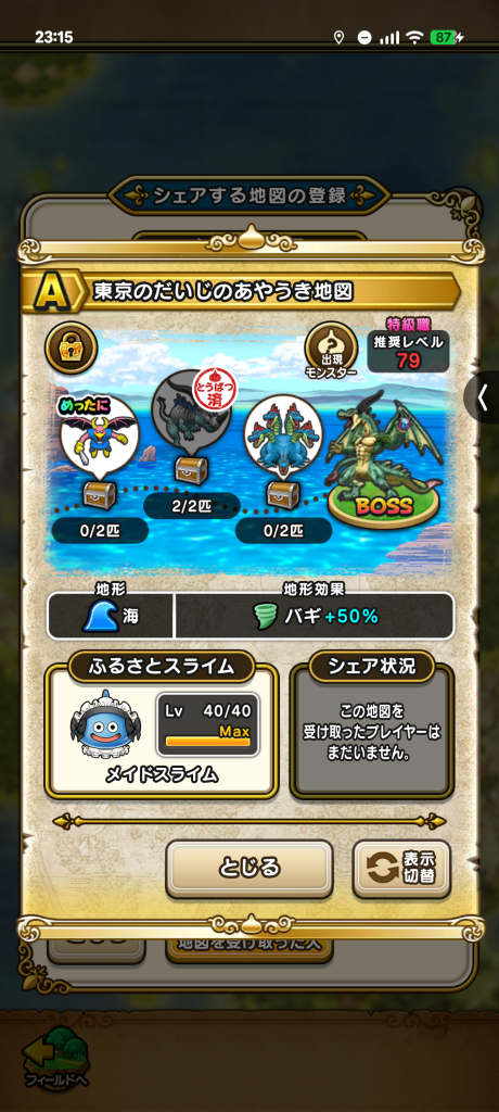 バラモスゾンビが2匹でてくるBランクの地図をシェアいただけますでしょうか?