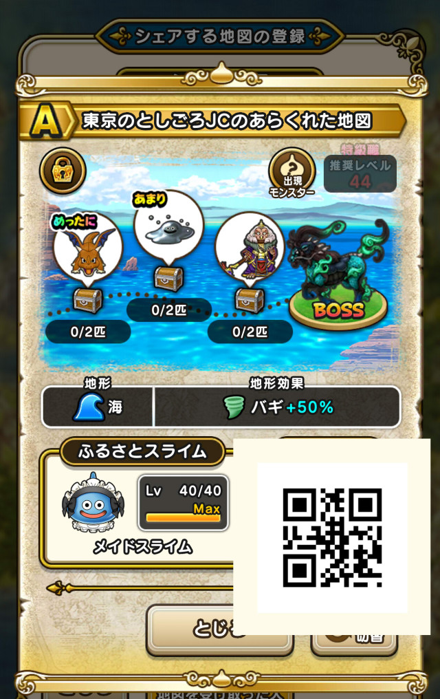 ドラクエウォークの宝の地図をシェア・入手するためのフレンド募集掲示板です。シェア時は宝の地図の内容(グレード、BOSS、お宝モンスター、都道府県)と自分のIDを記載してください。