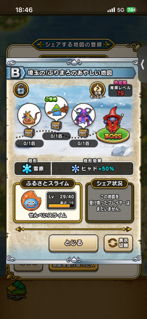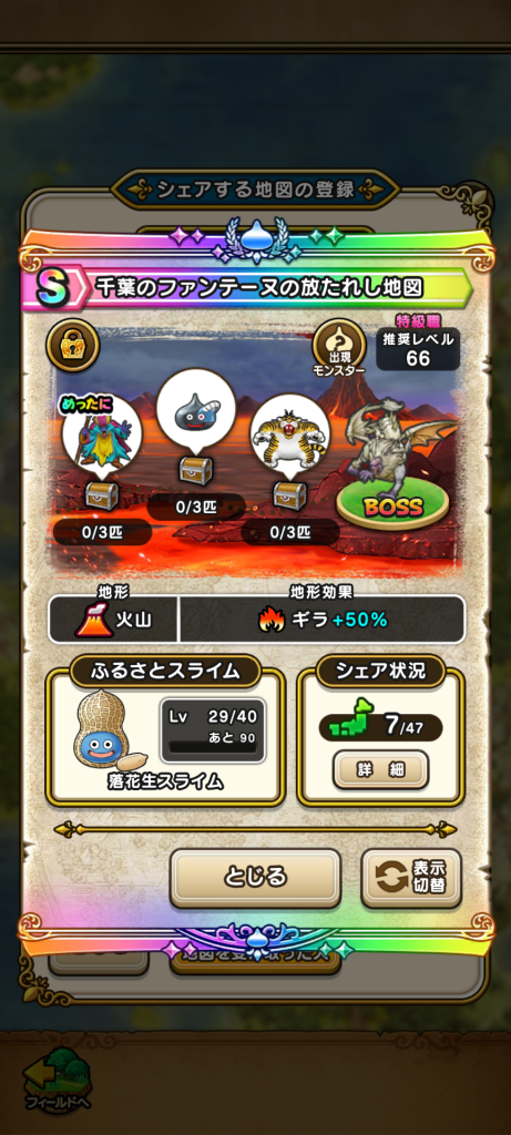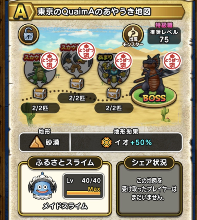 ドラクエウォークの宝の地図をシェア・入手するためのフレンド募集掲示板です。シェア時は宝の地図の内容(グレード、BOSS、お宝モンスター、都道府県)と自分のIDを記載してください。