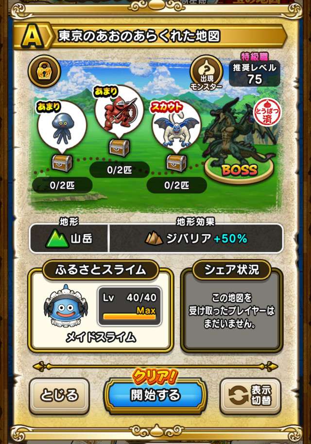 ドラクエウォークの宝の地図をシェア・入手するためのフレンド募集掲示板です。シェア時は宝の地図の内容(グレード、BOSS、お宝モンスター、都道府県)と自分のIDを記載してください。