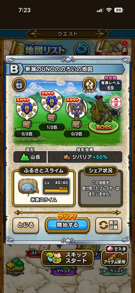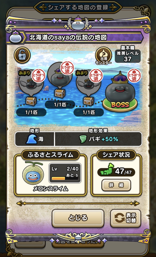 ドラクエウォークの宝の地図をシェア・入手するためのフレンド募集掲示板です。シェア時は宝の地図の内容(グレード、BOSS、お宝モンスター、都道府県)と自分のIDを記載してください。