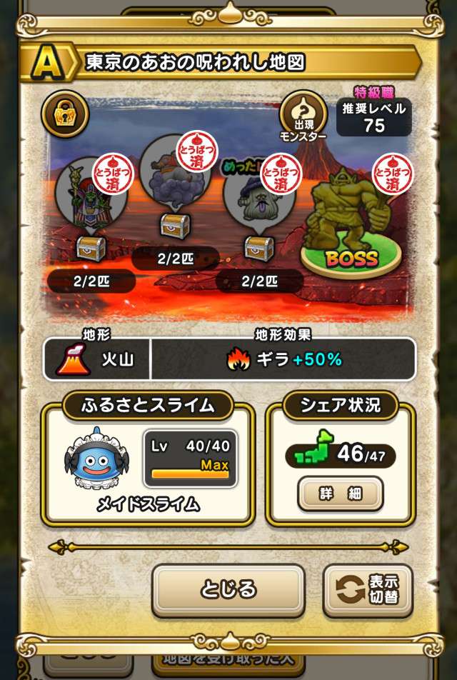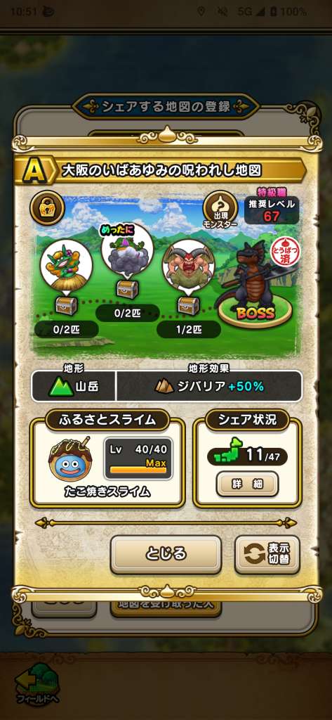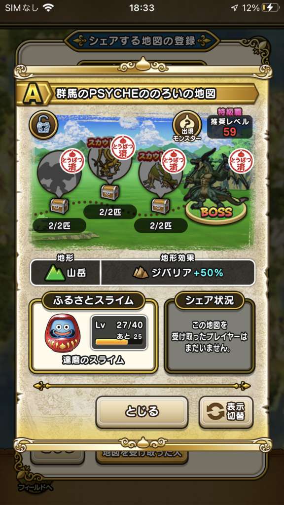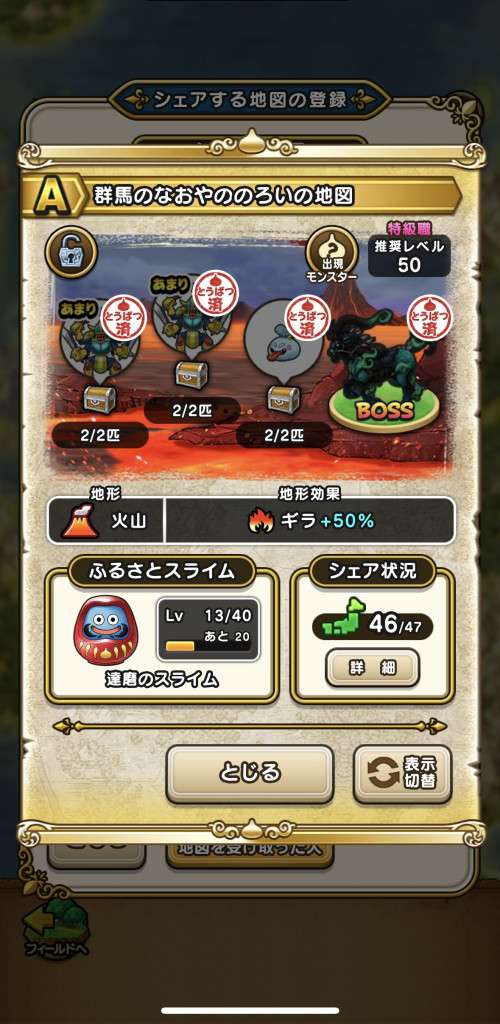 ドラクエウォークの宝の地図をシェア・入手するためのフレンド募集掲示板です。シェア時は宝の地図の内容(グレード、BOSS、お宝モンスター、都道府県)と自分のIDを記載してください。