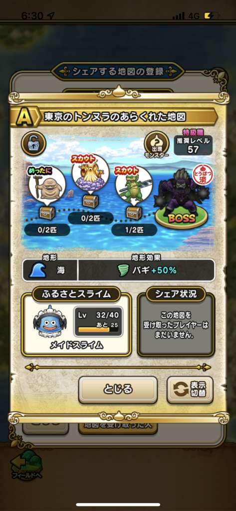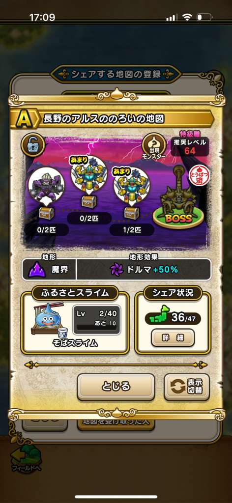 ドラクエウォークの宝の地図をシェア・入手するためのフレンド募集掲示板です。シェア時は宝の地図の内容(グレード、BOSS、お宝モンスター、都道府県)と自分のIDを記載してください。