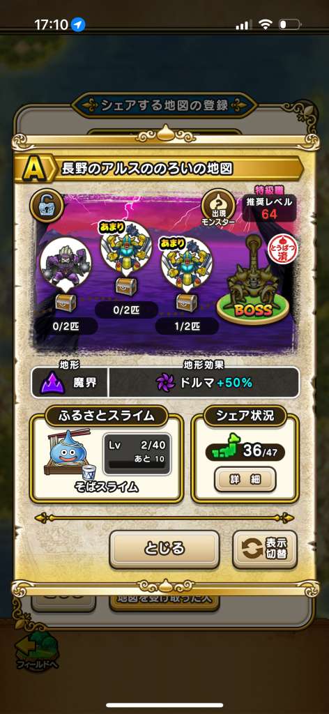 ドラクエウォークの宝の地図をシェア・入手するためのフレンド募集掲示板です。シェア時は宝の地図の内容(グレード、BOSS、お宝モンスター、都道府県)と自分のIDを記載してください。