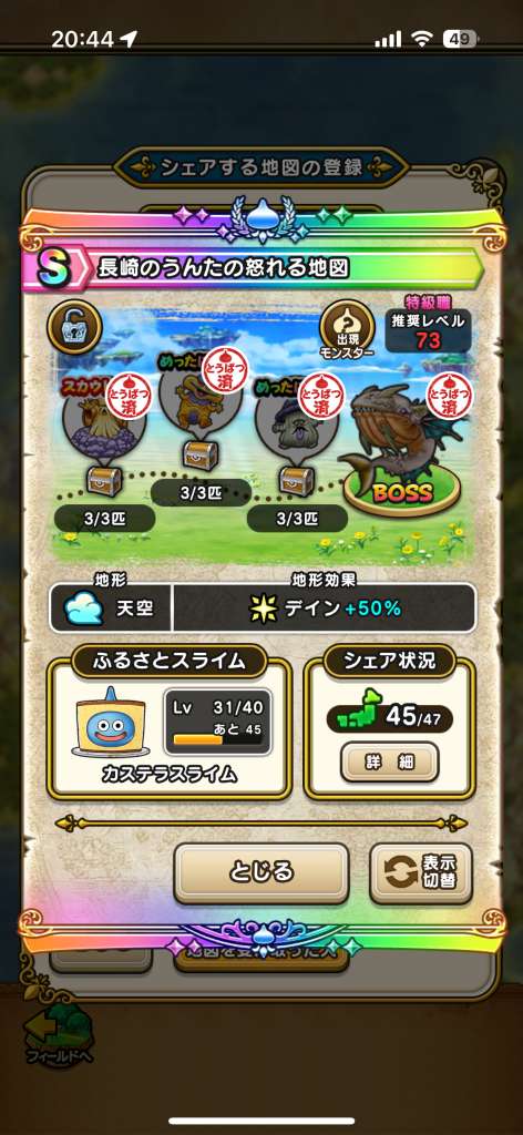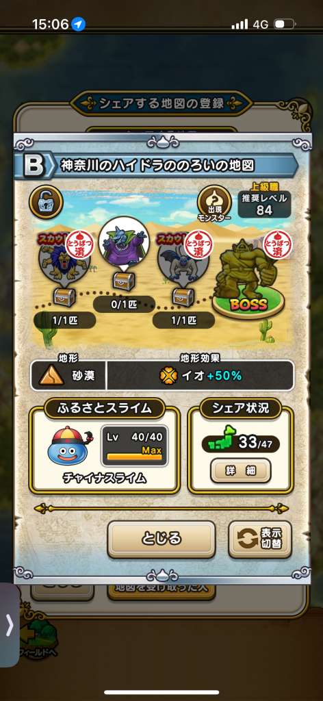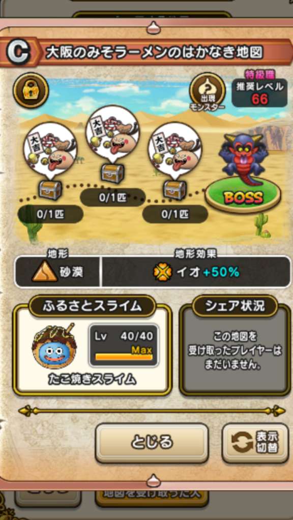 ドラクエウォークの宝の地図をシェア・入手するためのフレンド募集掲示板です。シェア時は宝の地図の内容(グレード、BOSS、お宝モンスター、都道府県)と自分のIDを記載してください。