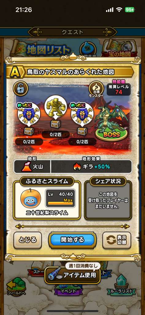 なかなか良い地図に恵まれず、根気よく頑張ってますが心が集まらないです。