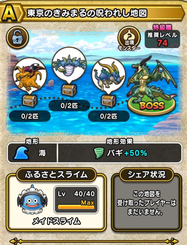 ドラクエウォークの宝の地図をシェア・入手するためのフレンド募集掲示板です。シェア時は宝の地図の内容(グレード、BOSS、お宝モンスター、都道府県)と自分のIDを記載してください。
