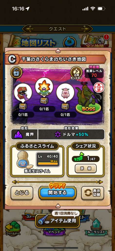 ワイトキング地図で有名な、福島のハルコバの嘆きの地図が、つむりんママの大量発生のようです。上級職でも可能。