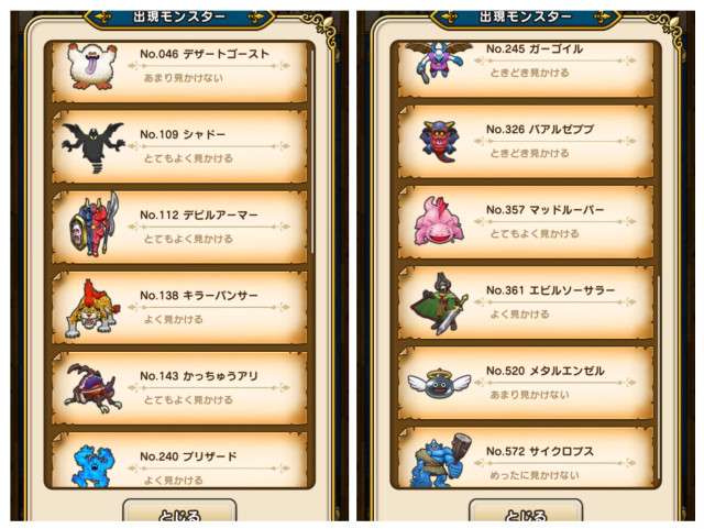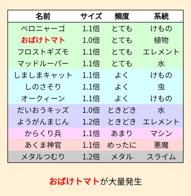 出現モンスは添付画像のとおり