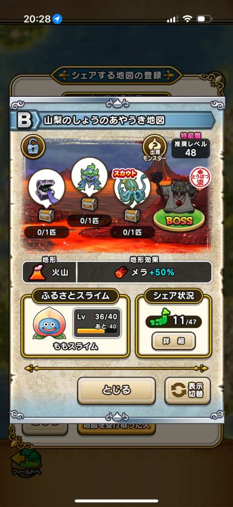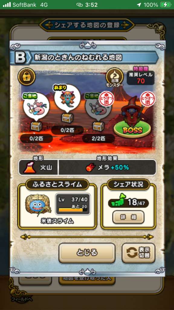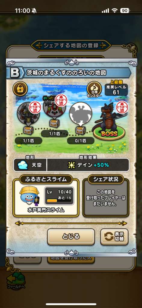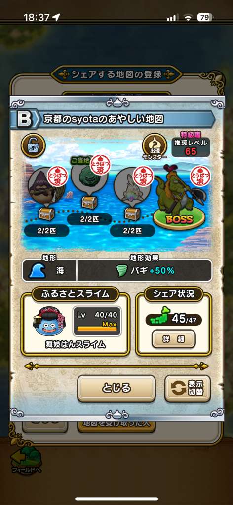 ドラクエウォークの宝の地図をシェア・入手するためのフレンド募集掲示板です。シェア時は宝の地図の内容(グレード、BOSS、お宝モンスター、都道府県)と自分のIDを記載してください。