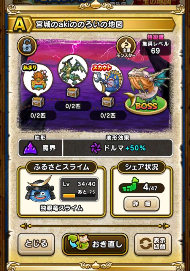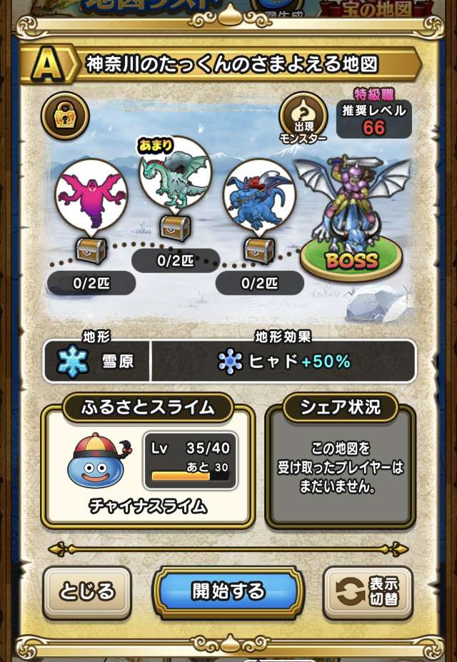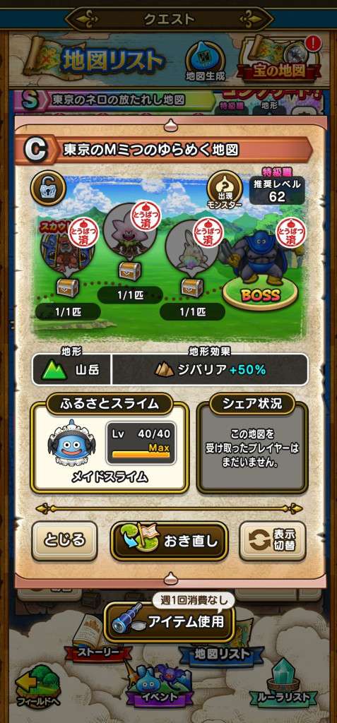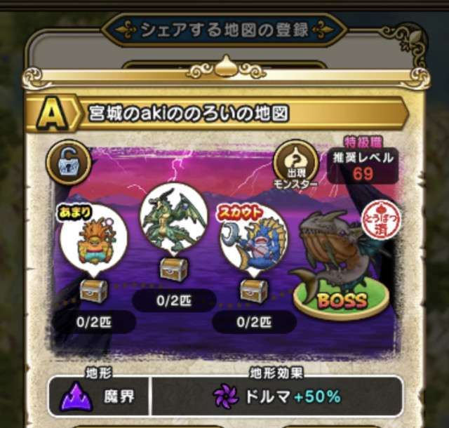 ドラクエウォークの宝の地図をシェア・入手するためのフレンド募集掲示板です。シェア時は宝の地図の内容(グレード、BOSS、お宝モンスター、都道府県)と自分のIDを記載してください。