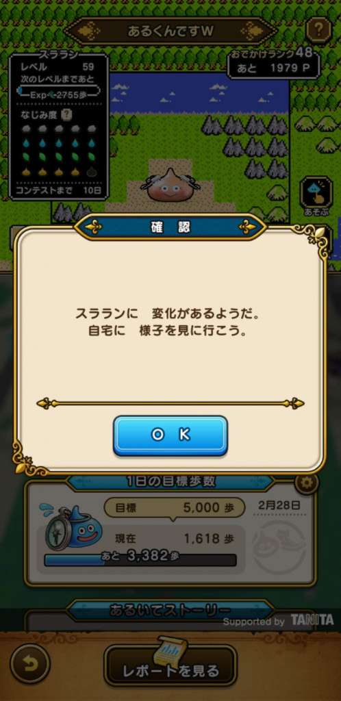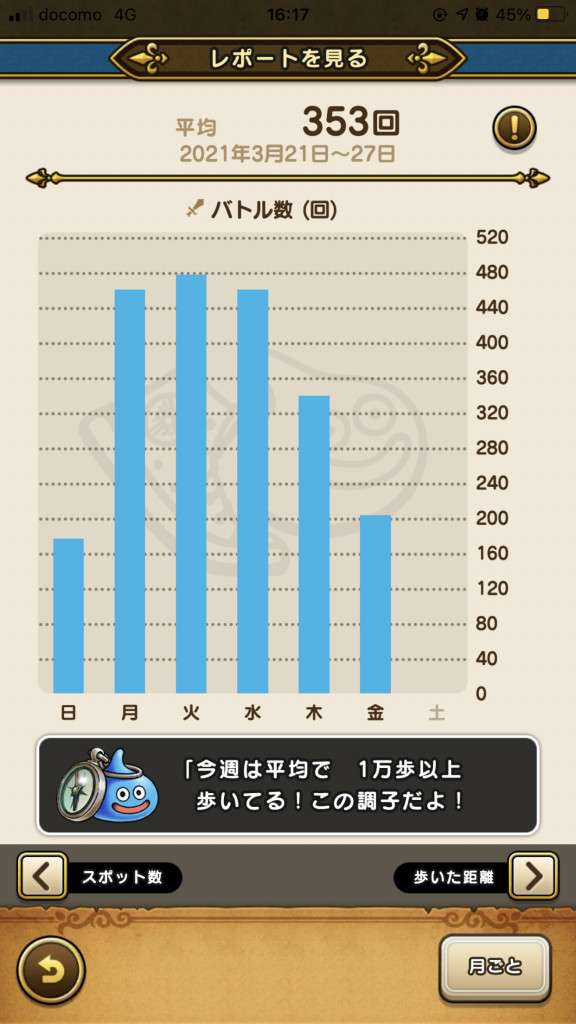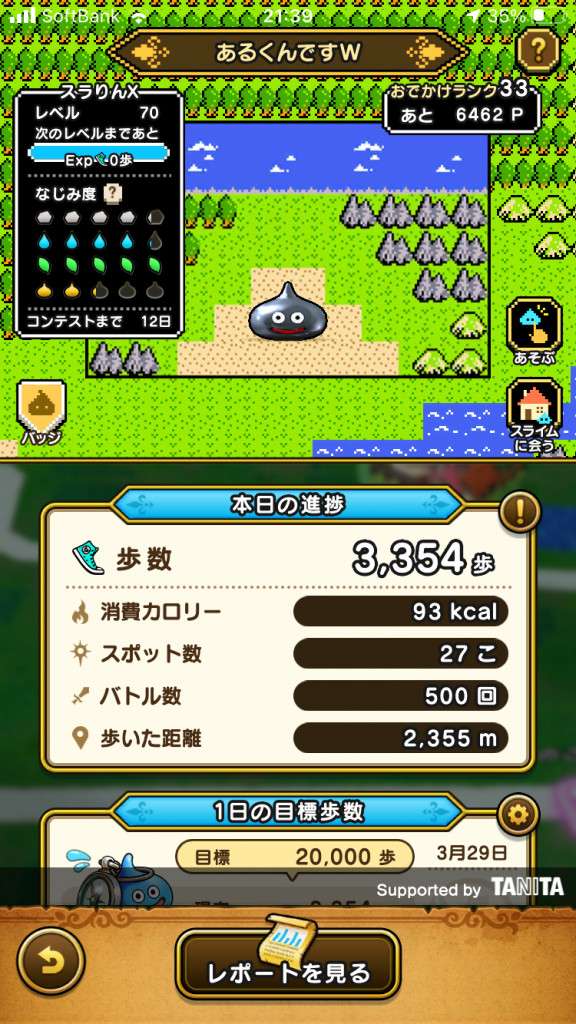 あとLv99に到達した日は、到達した時点で新しいスライムになりますが、そこから更に20000歩分、経験値が溜まります。