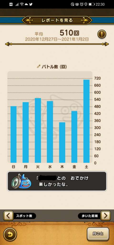 | 17 | ![]() はぐれメタル | ![]() ![]() ![]() ![]() ![]() ![]() | ・1日に歩いた歩数が30,000歩 |