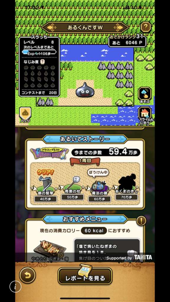 自身の歩いた歩数に応じて、スライムに経験値が入る仕組みです。その経験値を利用することでスライムのレベルが上昇します。
