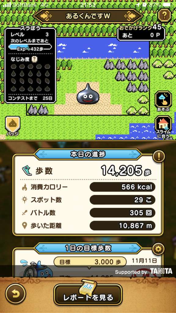 毎日2万歩と、関係ないと思うけど期間中にメタルスライムのこころ3つくらい