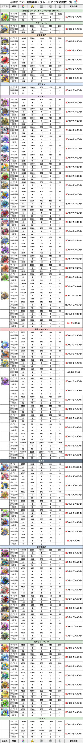 本記事では、心珠ポイントのお得な変換方法や効率、グレードアップに必要な数を掲載しています。より素早く確認する時にご活用ください。