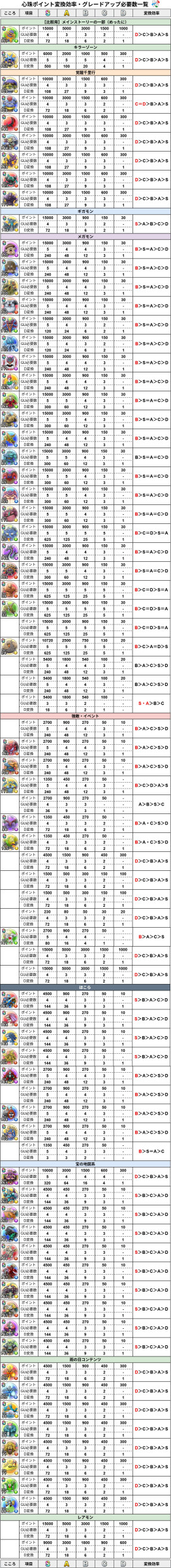 心珠ポイントおすすめ変換効率・GU必要数早見表