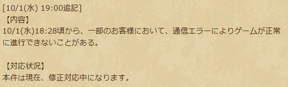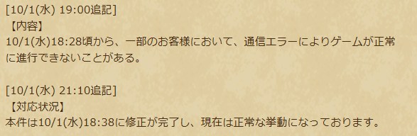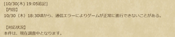 18:30頃より、一部のユーザーで通信エラーが発生しています。