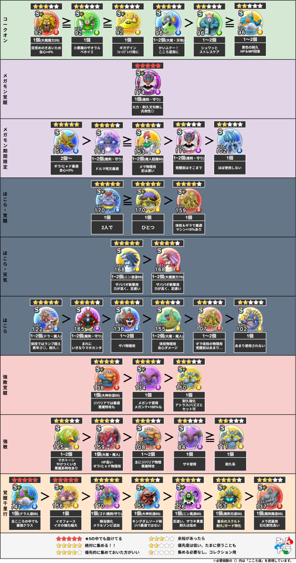 こころおすすめ優先度・必要個数|宝の地図/ギガモン/メガモン/覚醒千里行/強敵/ほこら