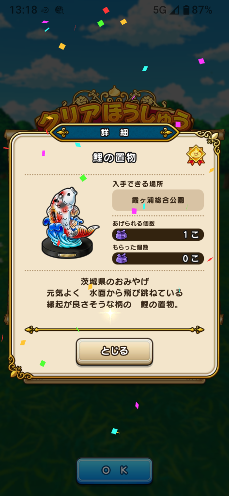 コレクション用のアイテムです。全国の各都道府県に配置されたランドマークスポットに触れることで、「おみやげ」を入手することができます。実際に現地まで足を運ぶ必要があります。