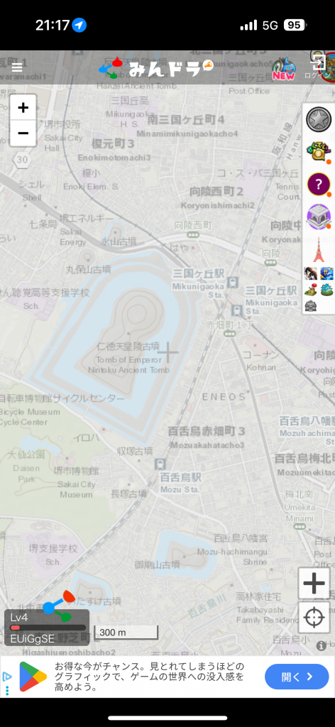 みんドラの地図では仁徳天皇陵古墳となっていますが、現在は仁徳天皇の古墳かどうかがわからなくなったので大仙陵古墳になっています