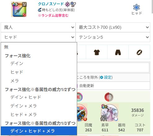ツールに必要なダメージに関わるステータスの最大値のみを反映しています。アイコンは右上に「追い」を独自に表記。
