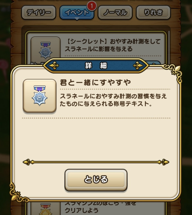- おやすみ計測をしてスラネールに影響を与える:称号「君と一緒にすやすや」