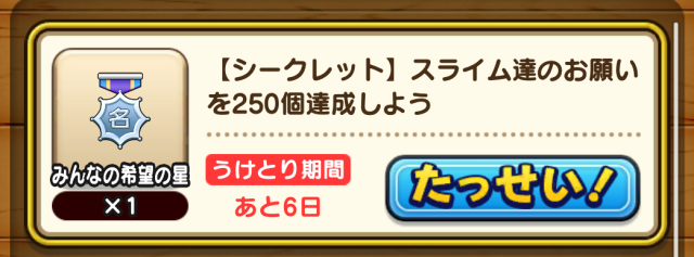 - スライムたちのお願い250個:称号「みんなの希望の星」