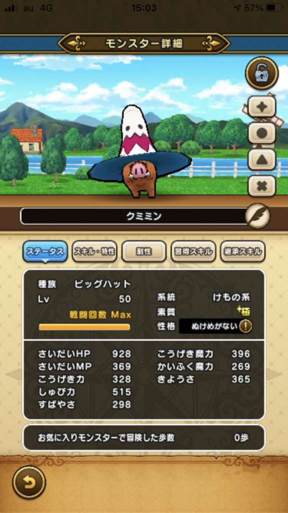 もし極個体が仲間になって、ハズレ特技じゃなければ、メラ耐性Sを2つ付けて属性弱点無しにしてやりたいぜ。