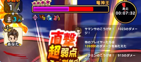 竜神王のおたけびで全体約200ダメージ与えたあと、味方がテンションダウンしていました。