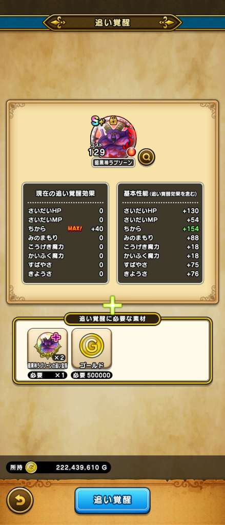 暗黒神ラプソーン(覚醒)のこころSの性能と必要個数