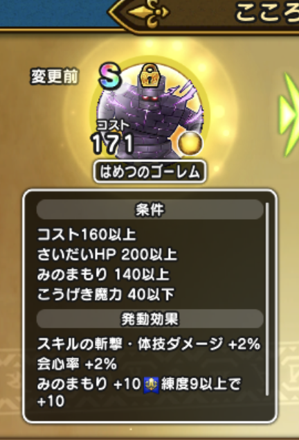 こころや心珠スロットは上級職と同じ。ただしこころの色合わせボーナスが1.2倍から1.3倍に!同じトロルキングSを装備した場合ちからは10上昇!
