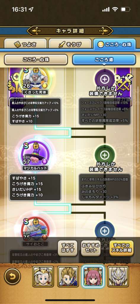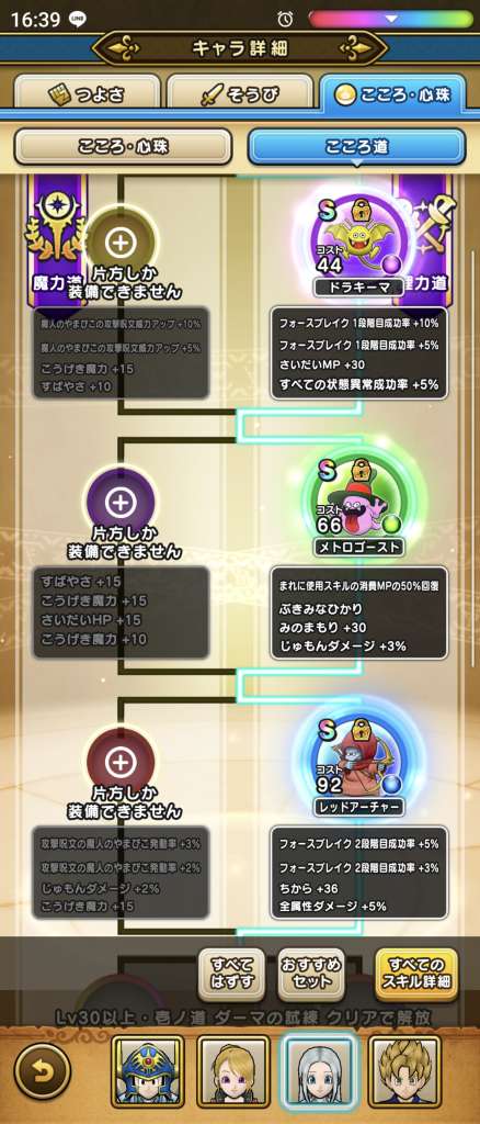 4上の枠にこころを装備していないと、以降のこころ道の効果は無効