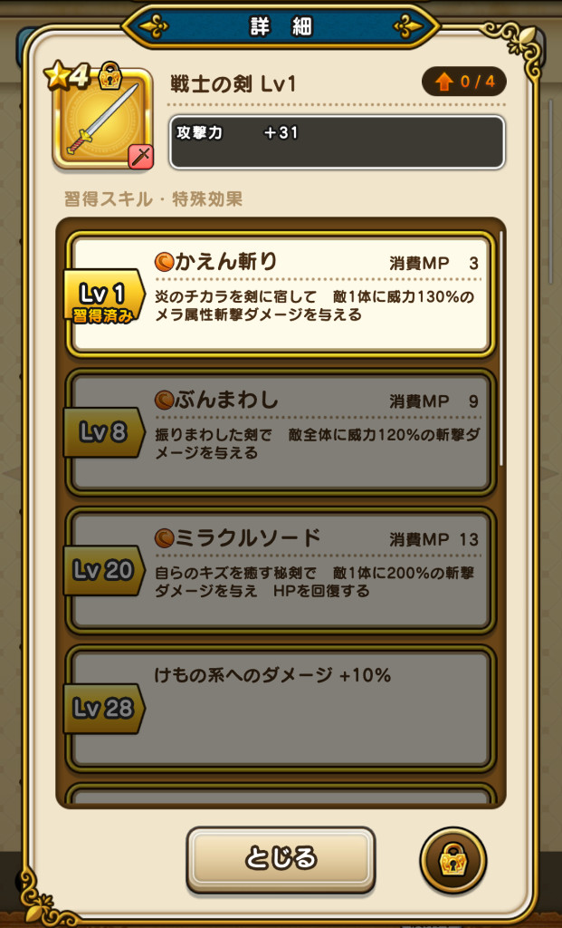 ![]() 閃光烈火のツメ | ![]() はぐれメタルの剣 | ![]() 聖盾騎士のオノ |