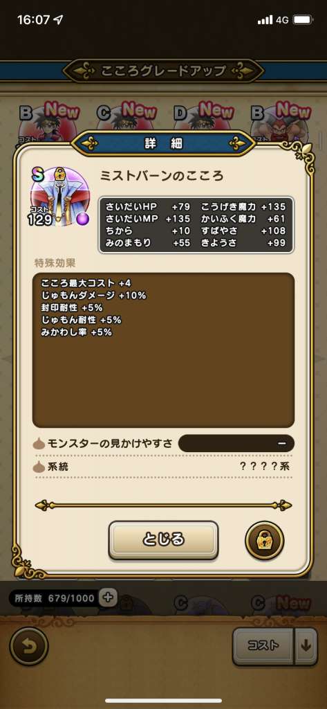 ドラクエウォークの「ミストバーンのこころ」の性能・ステータス順位、必要個数を掲載!心珠ポイントへの交換効率や出現場所などもまとめていますので参考にしてください。